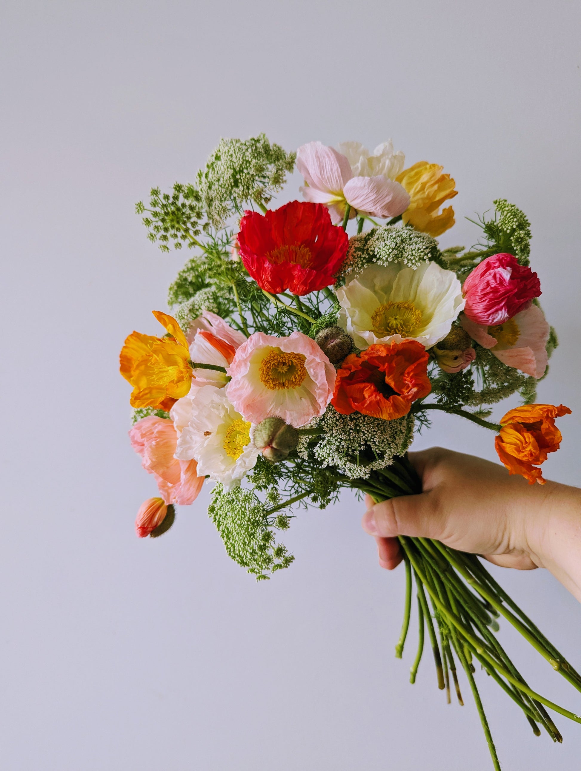Make a statement with our sweet and simple market bunches! Featuring 5 stems of carefully selected in season blooms plus minimal foliage and/transitional flowers, wrapped in deco paper and a complimenting ribbon. Please note that these bouquets contain ONE variety of flower only.