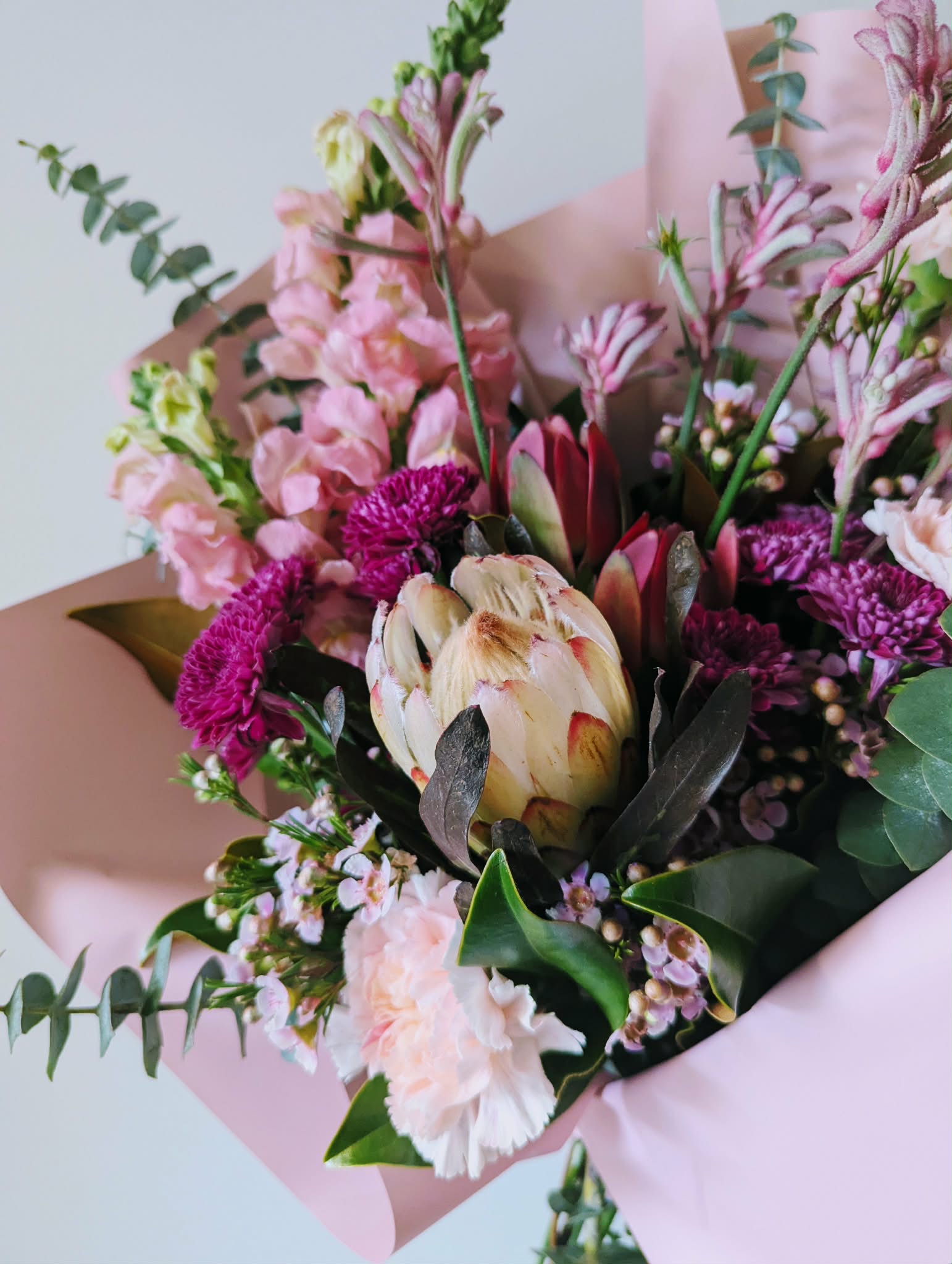 Let our flowers do the talking this Valentine's Day with this magnificent collection of high quality seasonal native flowers in soft pink tones. Thoughtfully arranged into a showstopping bouquet and finished with complimenting deco paper and ribbon.